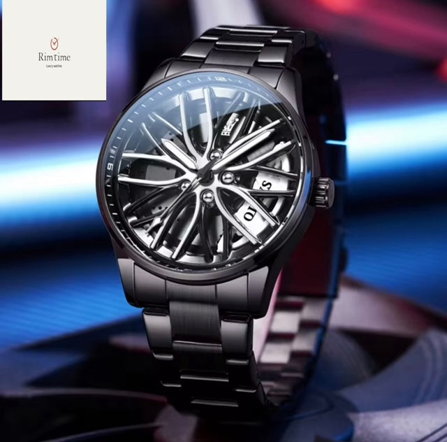 Stealth and simple. The Blackout Edition keeps the wheel aesthetic but tones everything down with matte/black details for a clean daily watch that matches any fit.